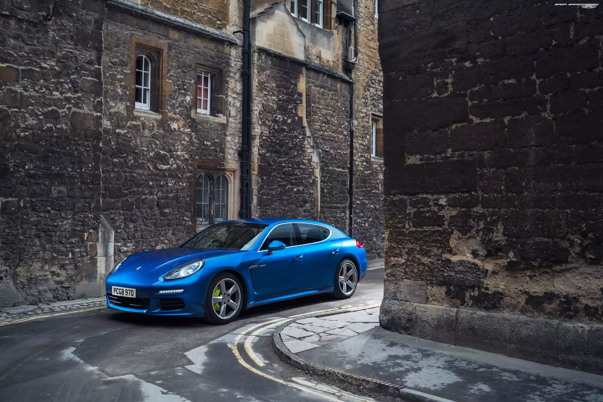 Ulica, Domy, Porsche Panamera S E-Hybrid, Niebieskie, 2013- Zdjęcia samochodów