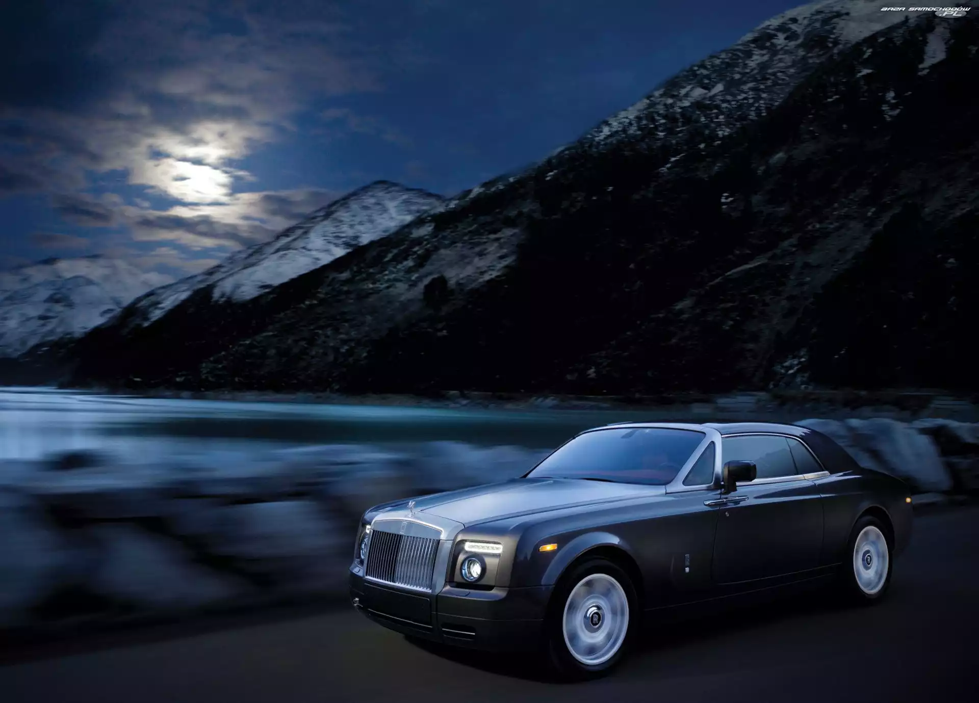 Ksenony, Rolls-Royce Phantom Coupe Reflektory, Rolls-Royce Phantom Coupe Mury, Niebieski, Rolls=Royce Phantom Coupe Drogi, Rolls-Royce Phantom Coupe, Oświetlenie Wydechowy, Rolls-Royce Phantom Coupe, Układ Lusterka, Przód, Rolls-Royce Phantom Coupe Pasażerska, Rolls-Royce Phantom Coupe, Przestrzeń Phantom Coupe Rolls-Royce Phantom Coupe, Most Deszcz, Mokry, Rolls-Royce Phantom Coupe Droga, Rolls-Royce Phantom Coupe, Góry Ulica, Rolls-Royce Phantom Coupe, Miasto Rolls-Royce, Phantom Coupe Alufelgi, Rolls-Royce Phantom Coupe